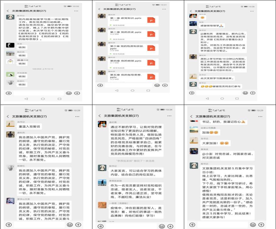 5月28日,雅安文旅集團(tuán)機(jī)關(guān)支部開展“黨員固定學(xué)習(xí)日”活動,機(jī)關(guān)支部黨員、預(yù)備黨員、發(fā)展對象、入黨積極分子近30人線上云集,學(xué)習(xí)《政黨知識》《黨的歷史》《黨的性質(zhì)和宗旨》《黨的綱領(lǐng)》《黨的指導(dǎo)思想》,并進(jìn)行積極討論發(fā)言。