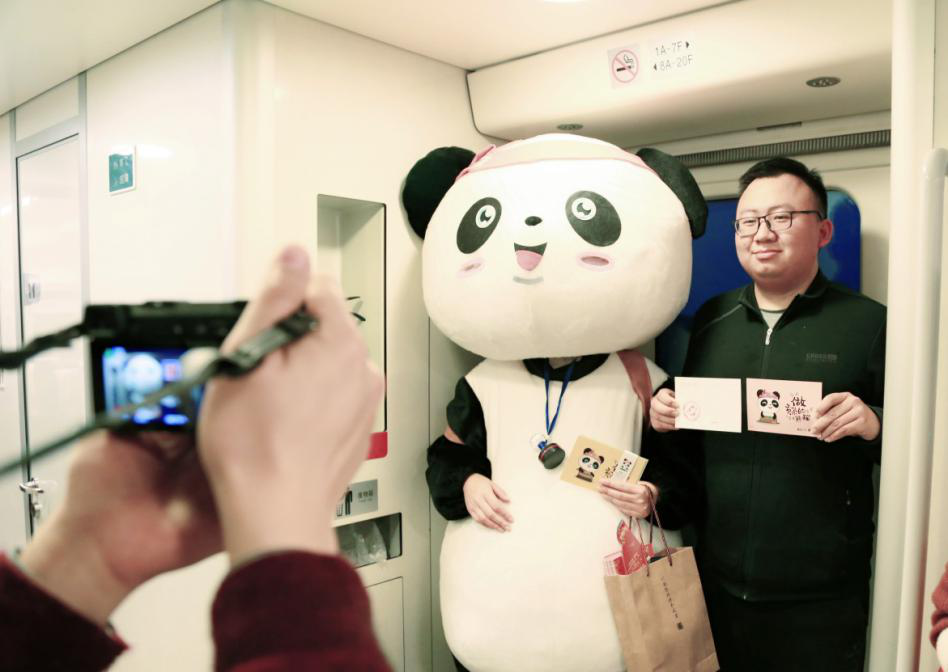 二是制作燈會(huì)主題明信片。提前定制雅安城市吉祥物大熊貓雅雅、安安大型人偶,走進(jìn)車(chē)廂向乘客發(fā)出燈會(huì)邀請(qǐng)函,首次推出本屆燈會(huì)的周邊文創(chuàng)產(chǎn)品800張,暨主題明信片“坐動(dòng)車(chē)回雅安”和“不會(huì)做貢茶的滾滾不是真熊貓”,加蓋燈會(huì)專(zhuān)屬紀(jì)念章,宣傳本屆燈會(huì)舉辦時(shí)間、地點(diǎn)和亮點(diǎn),與乘客互動(dòng)分享1000余人次。