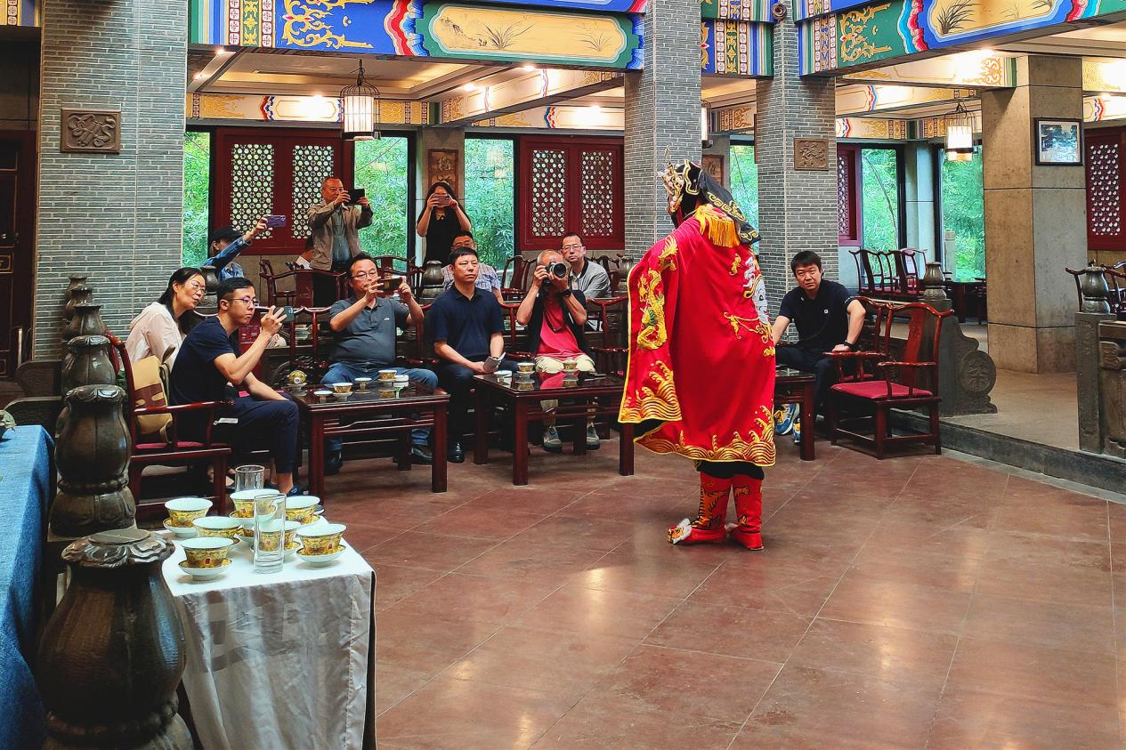 調(diào)研組一行先后參觀了蒙頂山世界茶文化博物館及從天蓋寺至皇茶園的茶文化景點,欣賞川劇變臉、吐火、蒙頂山龍行十八式茶技表演,了解蒙頂山源遠(yuǎn)流長的茶文化、茶馬文化。