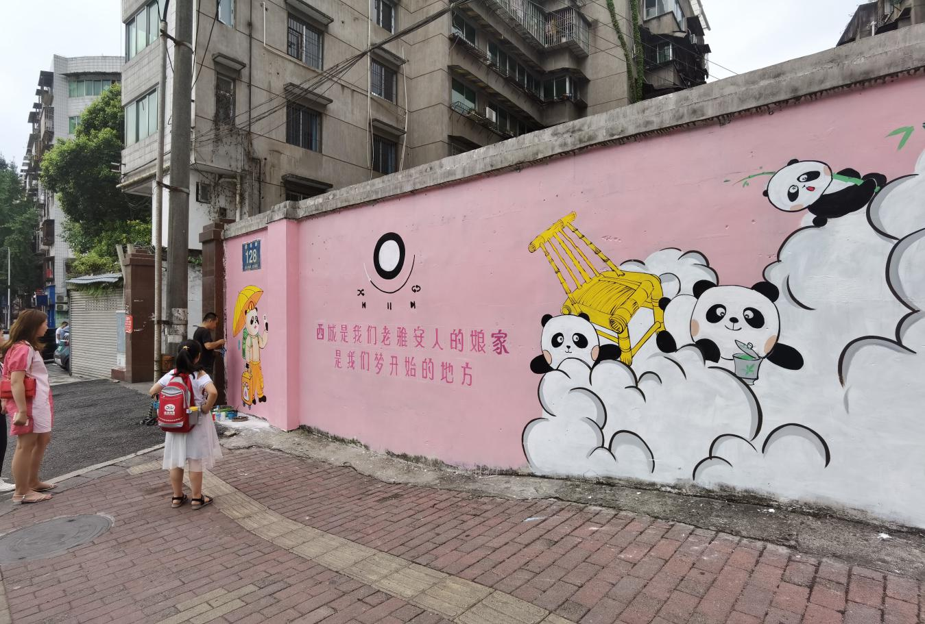 二是公開(kāi)征集樣板作品。以“為愛(ài)而繪·涂鴉先鋒”為主題,為征集來(lái)的墻面免費(fèi)彩繪。老西城縣前街一墻面陳舊,墻繪師將大熊貓和哆啦A夢(mèng)結(jié)合,圖文并茂、通俗易懂,表達(dá)“熊貓老家在雨城”。土橋社區(qū)雅安城市音樂(lè)廳外墻面破損,墻繪師大膽選用粉紅色調(diào),“雅雅安安的音樂(lè)會(huì)”與周邊環(huán)境反差萌,吸引無(wú)數(shù)市民打卡拍照。