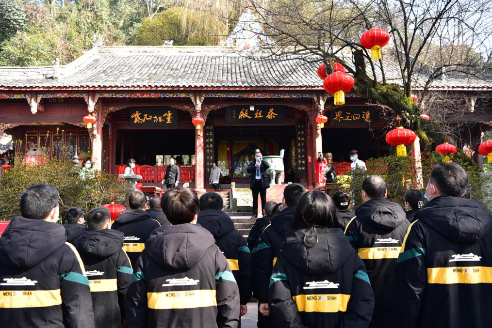 三、推廣民俗,傳統(tǒng)文化添氛圍。正月初一,為感恩茶祖吳理真為人類做的貢獻(xiàn),蒙頂山景區(qū)舉行了開年第一場(chǎng)“拜茶祖·祈大?!辈枳婕腊輧x式,誦讀祭文,敬拜茶祖,行作揖禮,敬獻(xiàn)蒙頂皇茶,去掉昔日進(jìn)香的流程,蒙頂山景區(qū)也將此次的“茶祖祭拜”儀式感做到十足,令不少游客為之駐足。為營(yíng)造節(jié)日氛圍,蒙頂山花間堂·茶馬司酒店還開展了新年剪紙等傳統(tǒng)非遺活動(dòng),以及古風(fēng)發(fā)簪制作、陶罐涂色、毛氈掛件制作活動(dòng),受到入住游客的歡迎。