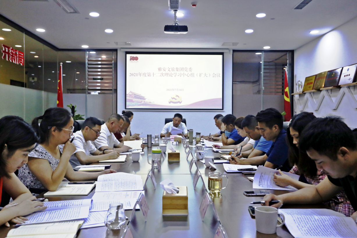 7月14日上午,雅安文旅集團黨委召開2021年度第十二次理論學習中心組(擴大)會議,迅速傳達、研究貫徹中國共產(chǎn)黨雅安市第四屆委員會第十次全體會議精神。集團公司班子成員,各子公司執(zhí)行董事、總經(jīng)理和集團部門負責人共20余人參加會議。