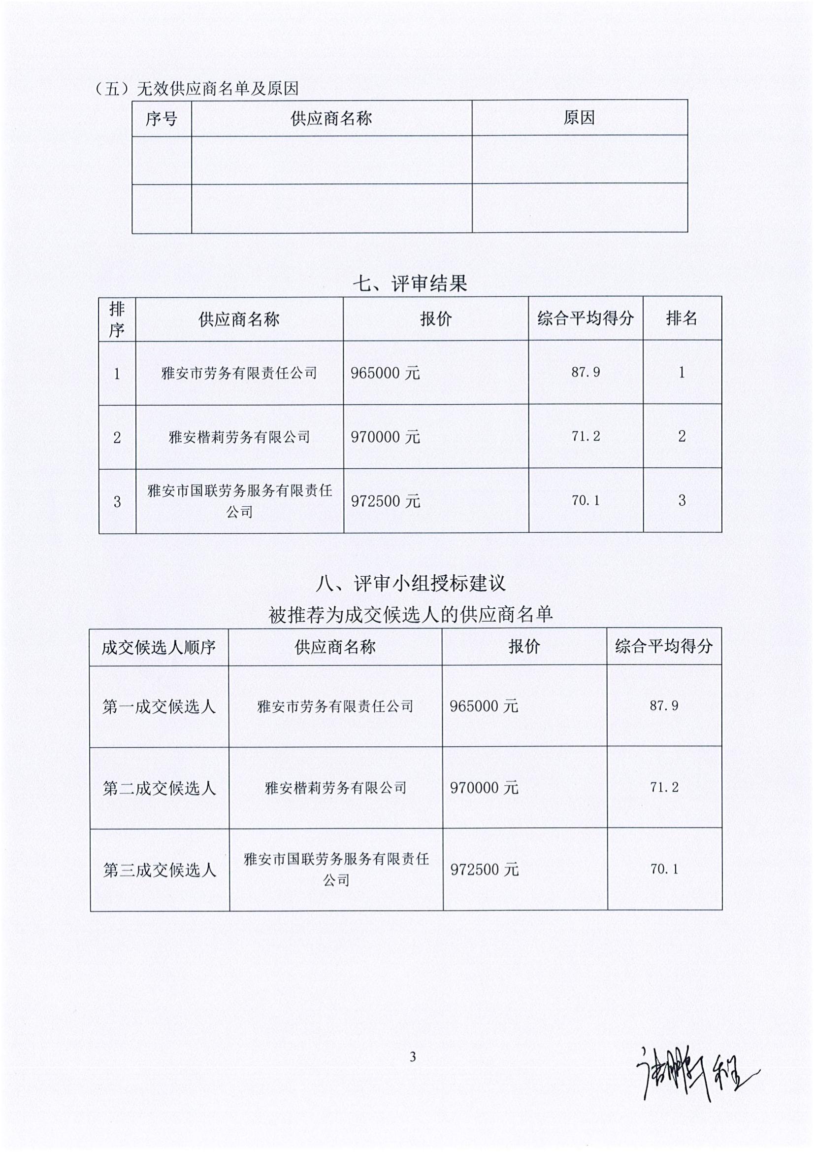 雅安蒙頂山文化發(fā)展有限公司酒店管理分公司 職工勞務(wù)外包服務(wù)采購項(xiàng)目評審報告