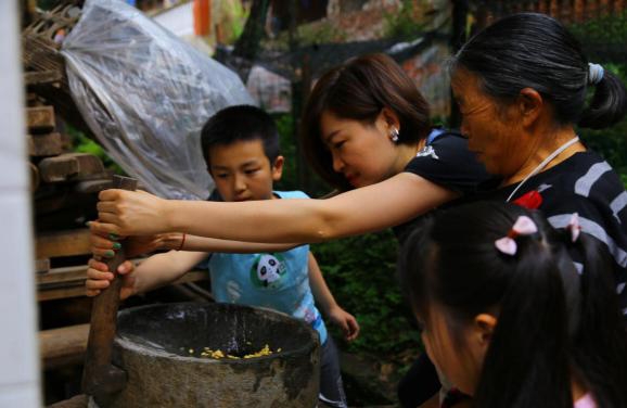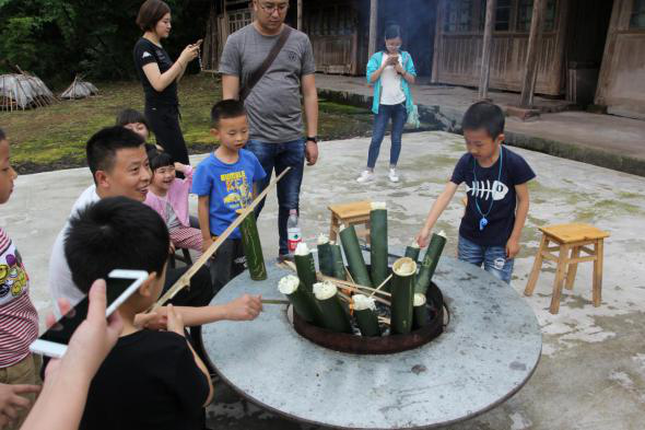 “碧螺谷親子自然體驗(yàn)營(yíng)”是一堂生動(dòng)的自然研學(xué)課堂,父母帶著孩子住農(nóng)家院、吃農(nóng)家飯、干農(nóng)家活,走進(jìn)山村、了解自然。一起調(diào)制雄黃酒,抹額黃、系五彩絲線、制香包祛毒驅(qū)毒,徒步螺山采草藥、斗百草,感受端午節(jié)民間風(fēng)俗。游客們還積極響應(yīng)“愛(ài)心后備箱”工程,根據(jù)所需,買走貧困戶家中的土雞、土鴨、蜂蜜、雅魚(yú)等農(nóng)特產(chǎn)品,村民就地取材自制的竹筒花器、原木畫(huà)片也成為“搶手貨”。
